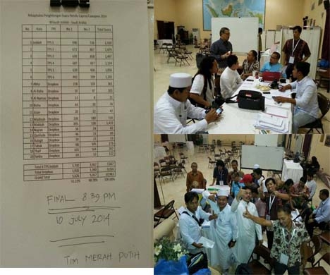 Penghitungan Suara tadi malam selesai dilakukan di Wisma Konjen-Jeddah, untuk wilayah Arab Saudi Barat ( Garibiah ) yang diantaranya Jeddah, Abha Al Baha, Al Namas, Bisha, Jizan, Madinah, Makkah, Najran, Qundufa, Rabigh, Tabuk, Thaif dan Yanbu. Untuk 14 kota tersebut semuanya memiliki Total suara 10,983, Pasangan Prabowo-Hatta mendapat suara sebanyak 51,22% ( 5,626 suara ), sementra Pasangan Jokowi-Jk mendapat 48,78% ( 5,357 suara ).